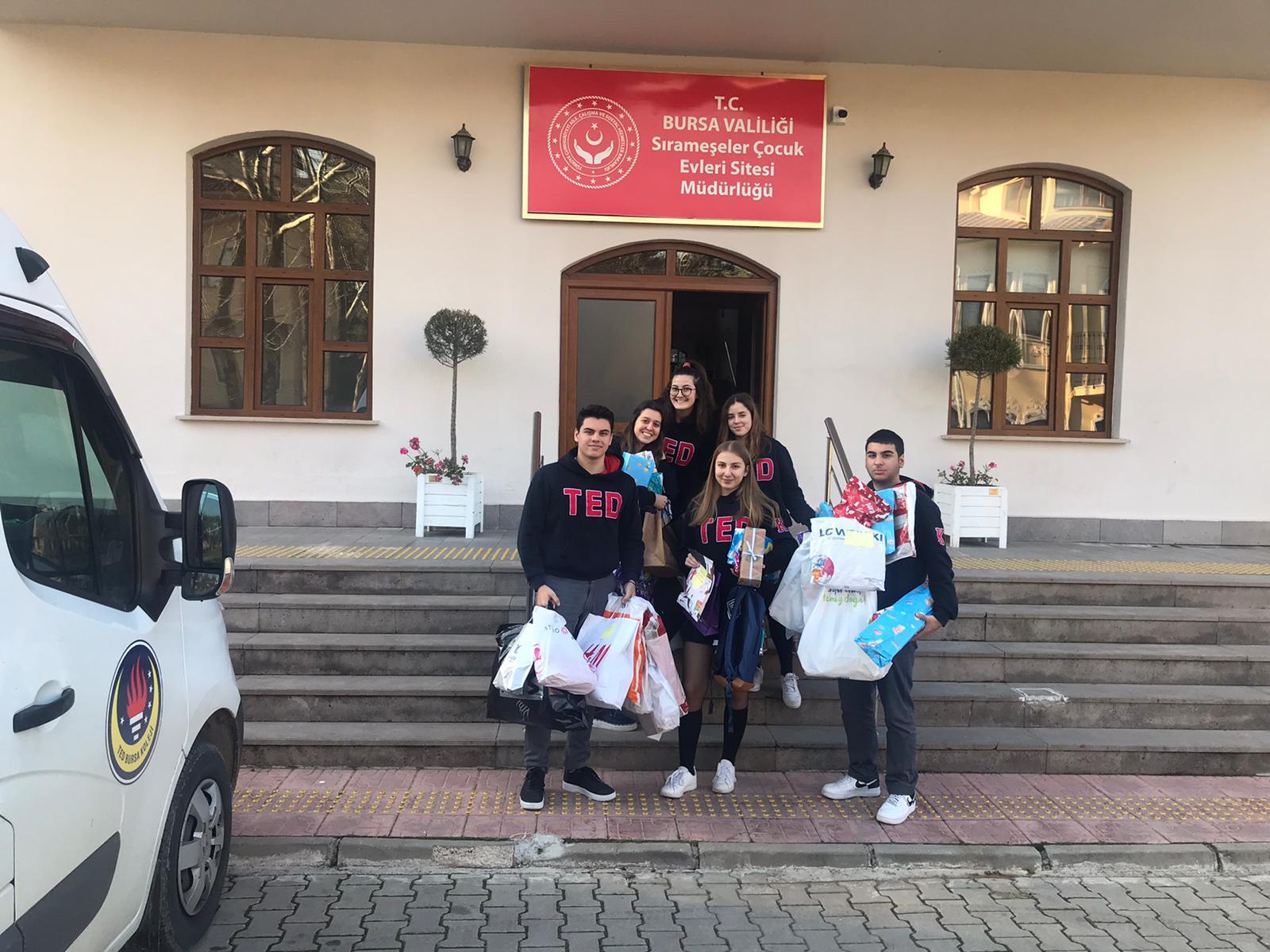 Bursa ilimizde bulunan Sevgi Evleri’nde kalmakta olan yetim çocuklar için öğrencilerimiz bir kampanya düzenlediler. Kampanya kapsamında öğrencilerimiz yaklaşan yeni yılda bir nebze olsun çocukların yüzünü güldürebilmek için yeni yıldan bekledikleri hediyeleri sordular. Daha sonra okulda düzenledikleri kampanya ile her çocuğun isteğini temin ettiler ve temin ettikleri hediyeleri kurum yetkililerine teslim ettiler.