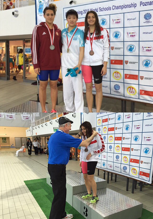 Henüz ilkokul sıralarında profesyonel anlamda yüzmeye başlayan öğrencimiz Merlin Aşkın her yıl başarılarına bir yenisini daha ekliyor. Bu yıl da 18-19.04.2015 tarihleri arasında Poznan' da düzenlenen Dünya Liseler Arası Yüzme Şampiyonası’na katılan sporcumuz elde ettiği derecelerle okulumuzun ve Bursa’nın gururu oldu. Akademik ve sportif başarılarıyla göz dolduran Merlin’in farklı kategorilerde elde ettiği başarılarla genel sıralamada dünya 3. ‘sü oldu.
