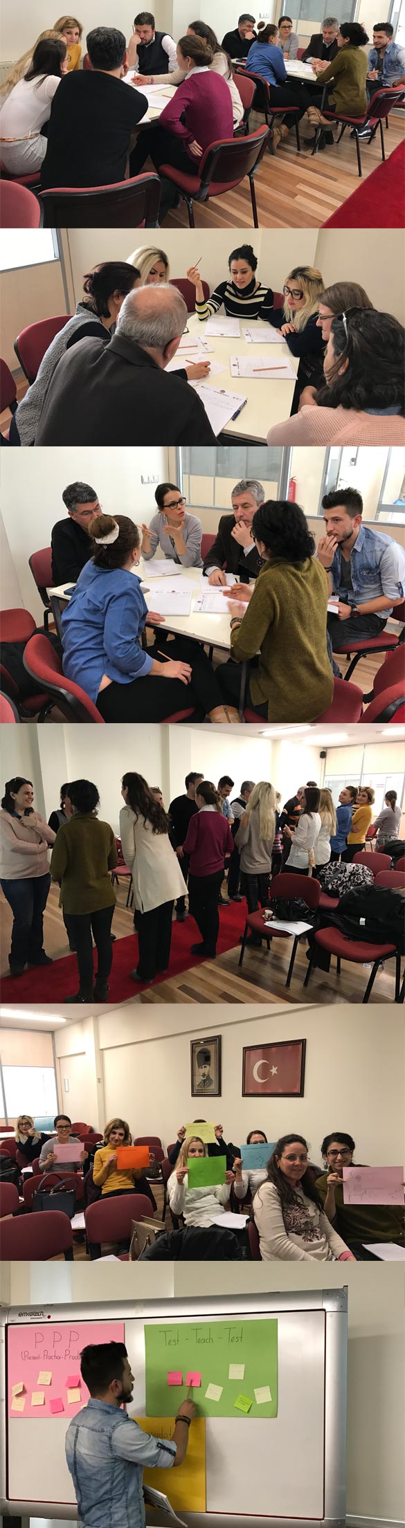 Milli Eğitim Bakanlığı ile Türk Eğitim Derneği arasında 20.12.2016 tarihinde imzalanan Hizmetiçi Eğitim Protokolü ile resmi ortaokullarda görev yapan İngilizce öğretmenlerinin bilgi paylaşımını sağlamak, becerilerini geliştirmek ve verimliliklerini arttırmak amacıyla Türk Eğitim Derneği’ne bağlı okulların bulunduğu Antalya, Aydın, Bursa, Hatay, Kayseri, Mersin ve Samsun illerinde hizmetiçi eğitim faaliyetleri planlanmıştır. Eğitim dört kademeli olup, 2016- 2017 Eğitim- Öğretim yılı boyunca Şubat, Mart, Nisan ve Mayıs aylarında yapılacaktır. Programın 1. Kademesi okulumuz İngilizce Öğretmeni ve Öğretmen Eğitimcisi Sema KAYA EMLEK tarafından ‘Öğrenci Merkezli Dil Bilgisi Öğretimi’ konusunda MEB’de görevli 20 İngilizce öğretmeninin katılımıyla gerçekleştirilmiştir.