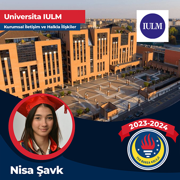 12.Sınıf öğrencimiz Nisa Şavk Universita IULM, Kurumsal İletişim ve Halkla İlişkiler bölümüne kabul edilmiştir. Öğrencimizi tebrik eder, başarılarının devamını dileriz.