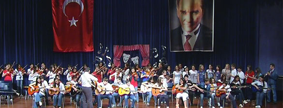Öğrencilerimiz 13 Mart 2009 tarihinde Fethiye Kültür Merkezi’nde Bursa Bölge Senfoni Orkestrası sanatçılarının eğitici müzik programını izlediler. Yaylı, ağaç üflemeli, bakır üflemeli ve vurmalı çalgılardan pek çoğunun seslerini dinleyen, enstrümanların isimlerini öğrenen öğrencilerimiz, sanatçıların tanıttıkları enstrümanlarla verdikleri mini dinletiyi de çok beğendiler. Yine sanatçılar tarafından sunulan notaları tanıtıcı, müziğin hayatımızdaki yerini vurgulayan drama gösterisi de öğrencilerimiz tarafından beğeniyle, neşeyle izlendi.