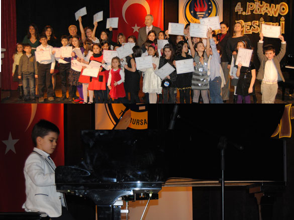 Genç piyanistlere katılım belgelerini sunan TED Bursa Koleji Kurum Müdürü H. Alp BOYDAK ve TED Bursa Özel İlköğretim Okulu Müdürü Necati ÇAKIR öğrencilerinin başarılarıyla gurur duyduklarını ifade ettiler.