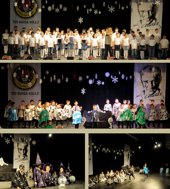 “TED Bursa Koleji Anaokulu Yıl Sonu Şöleni” 7 Haziran 2009 Pazar günü, Çağdaş Eğitim Kültür Merkezi’nde gerçekleştirildi. Anaokulu 4–5 Yaş ve Hazırlık Sınıfı öğrencilerimizin profesyonelleri aratmayan sahne performansları karşısında seyirciler gözyaşlarını tutamadı. Tüm grupların İngilizce ve Türkçe hazırladıkları oratoryo, dans, bale ve drama gösterilerinin yanı sıra temaya göre değişen kostümler ve koreografi de büyük alkış topladı.
