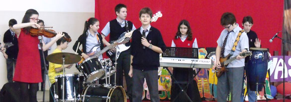 Şevval GÖKŞİMŞEK ve Ecem BOYACI öğrencilerimizin solist olarak sahne aldıkları etkinlikte klavyede Deniz TURŞUCULAR, bas gitarda Erol AKBAŞ, elektro gitarlarda Tolga BATTAL ve Burak Ertuğrul GÜNEY ve bateride Alperen YAŞAR keyifli ve başarılı seslendirmeler yaptılar. Şenlikte ilköğretim 8. sınıf, lise hazırlık ve 9. sınıf öğrencilerimiz sahnedeki arkadaşlarına eşlik ettiler.