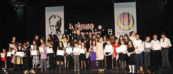 Bu yıl 5.’si gerçekleştirilen Piyano Resitali, 23 Ocak 2013 tarihinde gerçekleşti. Okulumuzun birinci sınıfından liseye kadar 43 piyanistin sahne aldığı müzik şöleni, renkli görüntülere sahne oldu. Zengin bir repertuarın sunulduğu konserde bazı öğrenciler ilk sahne deneyimlerini yaşadı. Genç piyanistlere katılım belgelerini sunan İlköğretim Kurumları Müdürü Necati Çakır, öğrencilerin başarılarıyla duydukları gururu ifade etti.